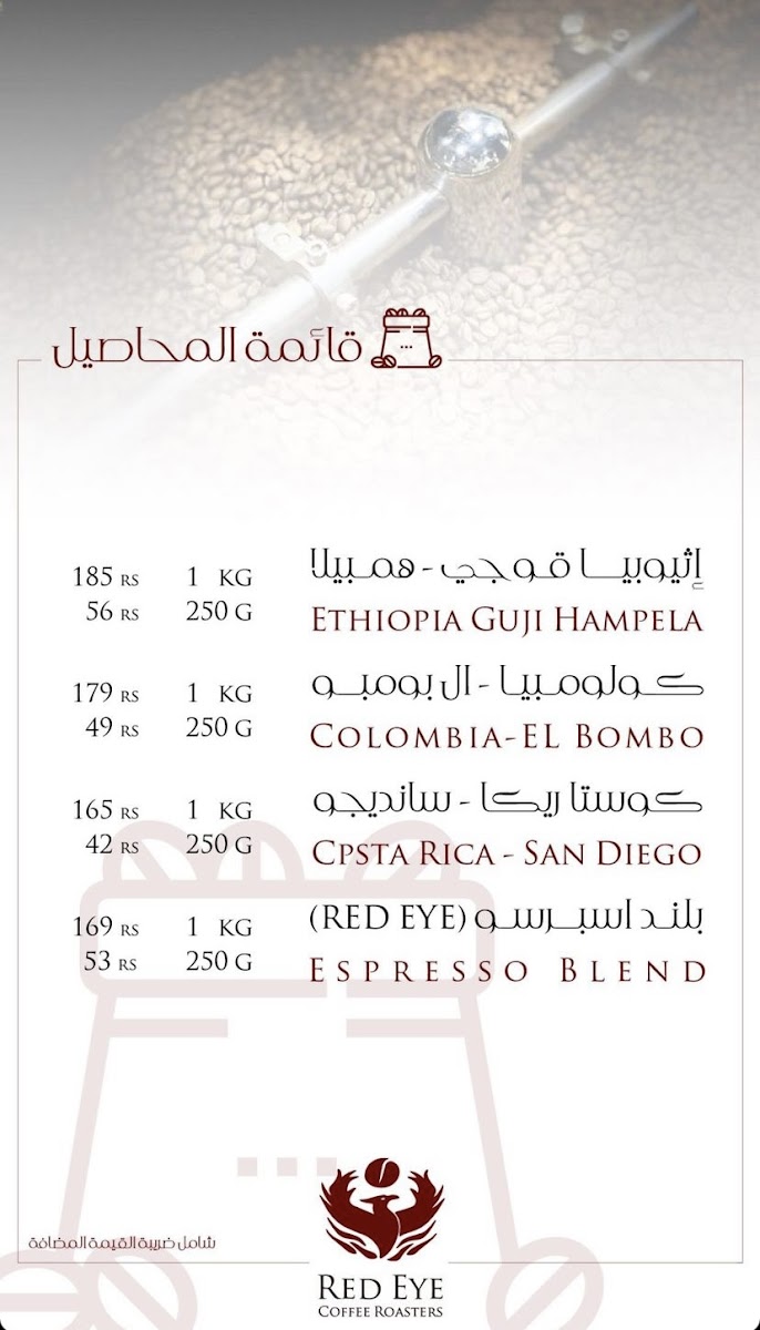 مقهى ومحمصة مختصة | RED EYE COFFEE ROASTERS Menu